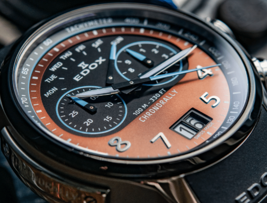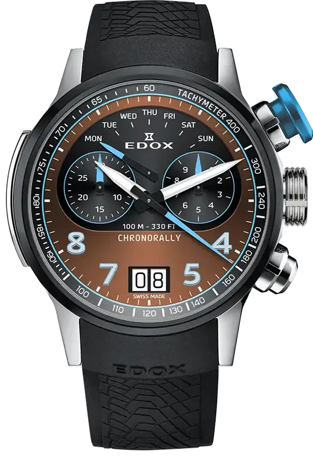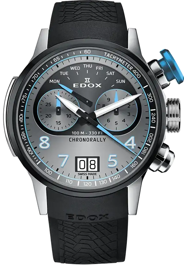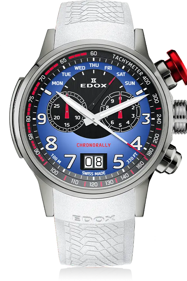 Ya sea compitiendo en un rally, en el Dakar, en la Formula 1 o al volante de un BMW de competicion, la precision es fundamental. el Edox Chronorally tiene todo lo que el corredor de automoviles o el amante de la velocidad necesita. Su caja ultraliviana de Titanio Gr5, lo hace confortable en la muñeca. Sus pulsadores sobredimensionados; su fondo de caja similar a la llanta de los automoviles de competicion o su correa de caucho con pattern de banda de rodamiento hacen que el Edox Chornorally sea un autentico Driver´s Instrument