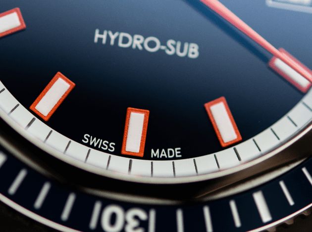 El diseño del Hydro-Sub Automatic Chronometer Limited Edition es limpio y práctico, se centra en lo esencial y descartando lo innecesario. El brazalete de acero sólido hace eco del brazalete original de Hydro-Sub. Incluso esto se ha mejorado, los eslabones con acabado satinado mate se alinean con mayor precisión y con un acabado más suave, asegurando un ajuste perfecto en la muñeca. Dos pulsadores liberan fácilmente la hebilla.