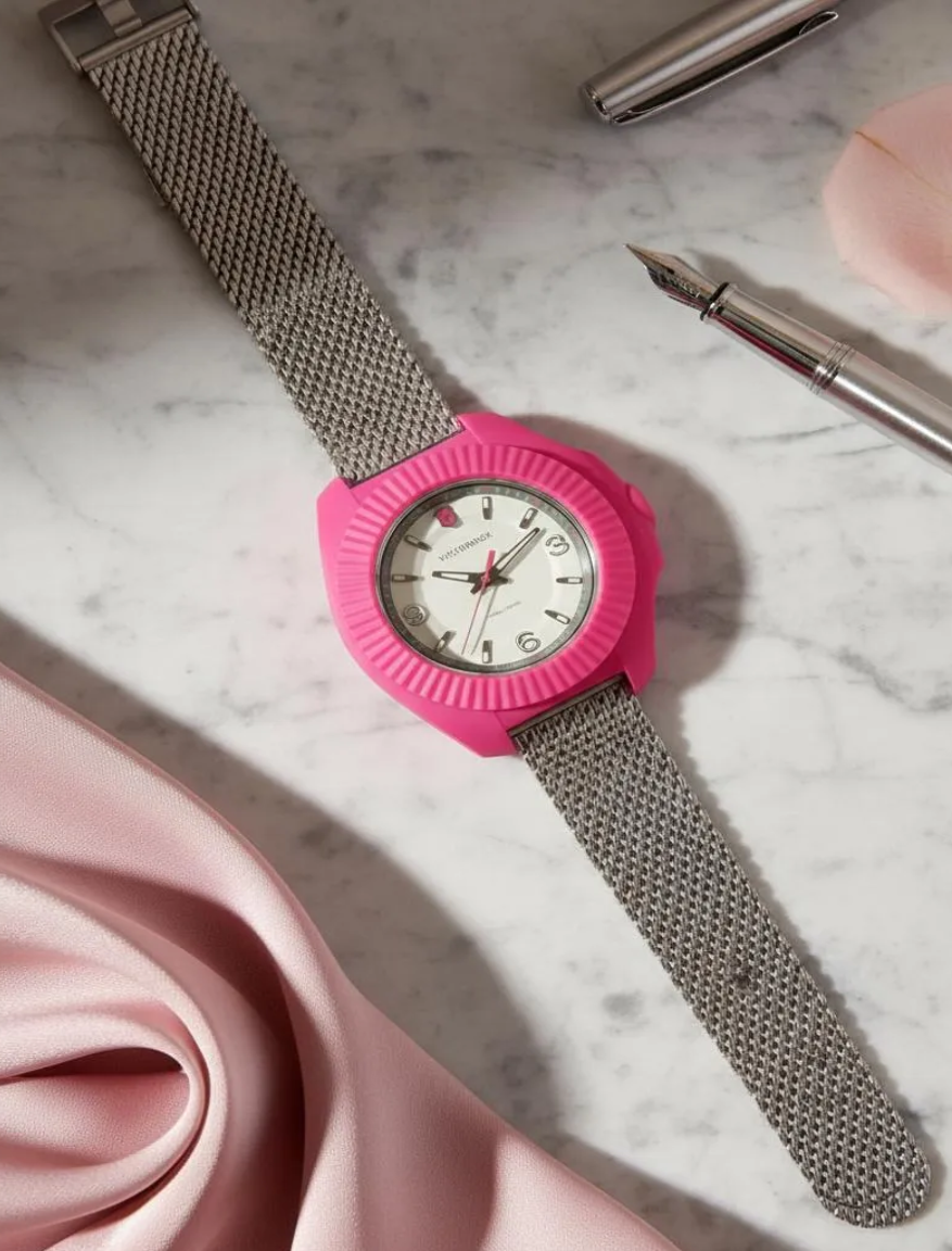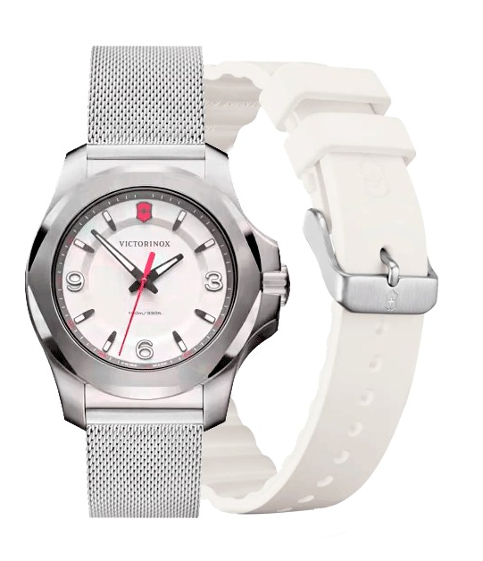 Presentamos lo último en relojes livianos y resistentes a la aventura: el INOXV Pensando en el futuro, funcional y hermoso en su forma, este reloj de fabricación suiza establece un nuevo punto de referencia en la relojería femenina. Tomando el audaz diseño icónico del INOX V original, lo reinventa para la mujer trotamundos más exigente. Con un peso 32 % más liviano y un 33 % más delgado, con una correa de goma resistente con un sistema de barra de liberación fácil para quitar y reemplazar la correa sin problemas, es una pulsera sin esfuerzo para ella.