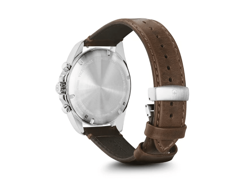 Atrévete a esforzarte con el reloj que se trata de forjar nuevas fronteras. Basado en su ADN de navaja suiza, este diseño mejorado es lujoso pero decididamente masculino. Los colores refinados y los índices curvos hacen una declaración de estilo, y los números llamativos y las manecillas de buen tamaño ofrecen una excelente legibilidad. La correa de piel flexible está rematada con una hebilla desplegable.